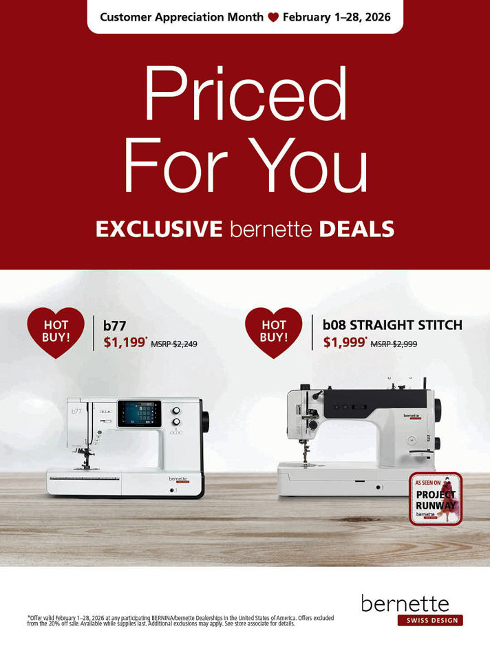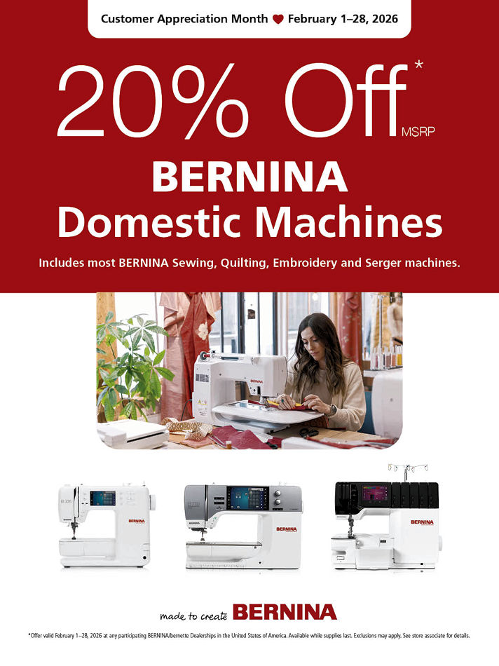 Reminder: All machines sold from our store, including bernettes, are offered with a no-charge Machine Mastering Class.