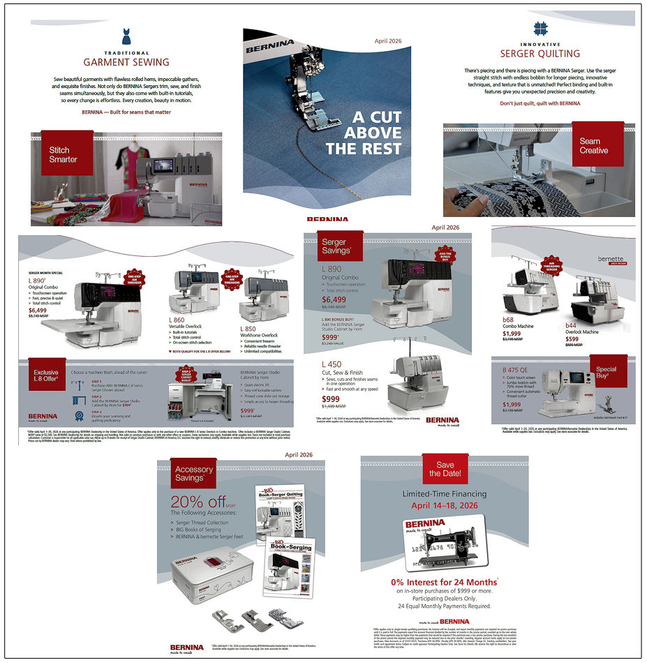BERNINA A Cut Above The Rest - Serger Month 2026 Now -thru- April 30, 2026