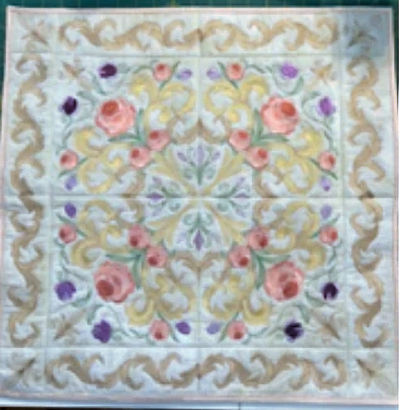 Stunning in its simplicity this 22" quilt is the perfect addition to a favorite table, or gracing a wall. Excellent for all levels of embroidery students. This will become a favorite project and a valued treasure. Perfect for your favorite friend for Christmas, too.