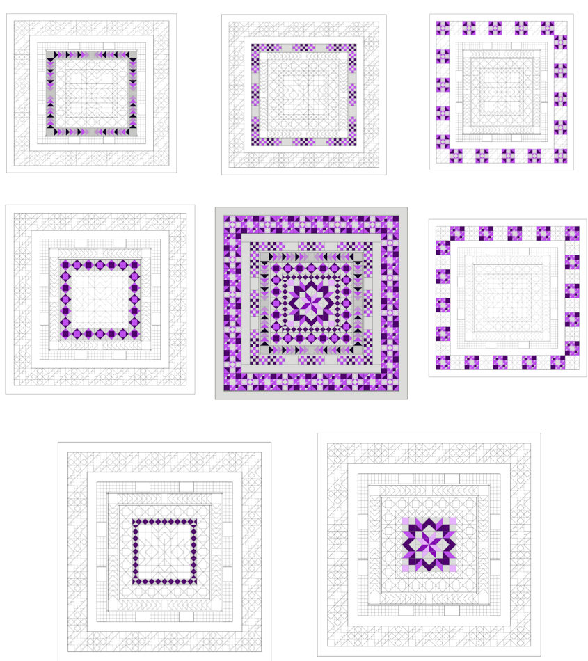 No fabric is included for this option. Fabric requirements as per the Pattern for your OWN Colorway (Dark, Medium, Lt-Medium and Light) and Background fabric for the 66" x 66" finished quilts or the expanded quilt (96" x 96") will be provided to you after sign-up).
