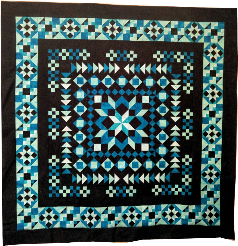 Please see the detailed QandA PDF below. The quilt ends up about 66" x 66" and the pattern has instructions for extending this this using an outer Star border to 96" x 96").