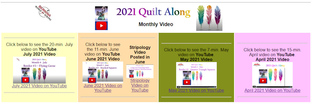 For the monthly Patterns: The store sent an eMail note to QuiltAlong 2021 Participants on or before the start of each month explaining how to access the current month's Pattern and Video.