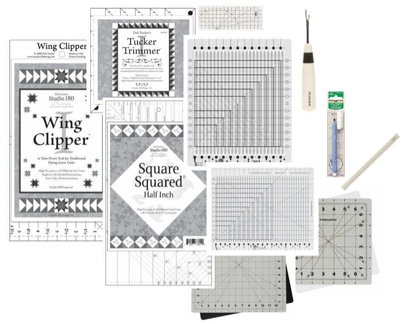 Some tools that you may use during the project are mentioned in the QandA PDF and will be mentioned on the Monthly Patterns as the Quilt Along months go along. Amy, in her Monthly Videos will also demonstrate use-of the particular month's tools that she used as she created her Quilt Along piece. The selected tools will be discounted 10% if you purchase them at Sign-Up time. Interested? Click below: